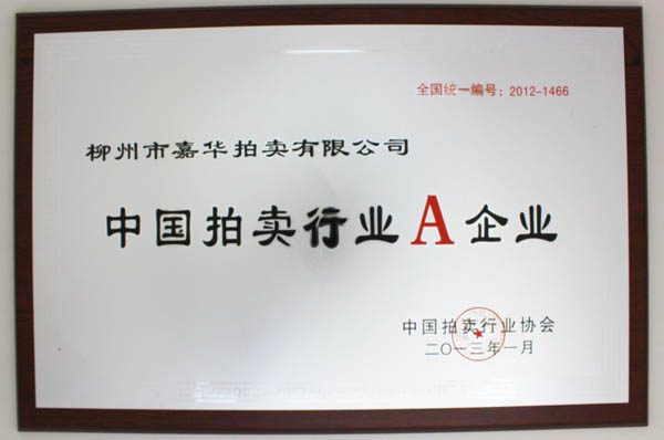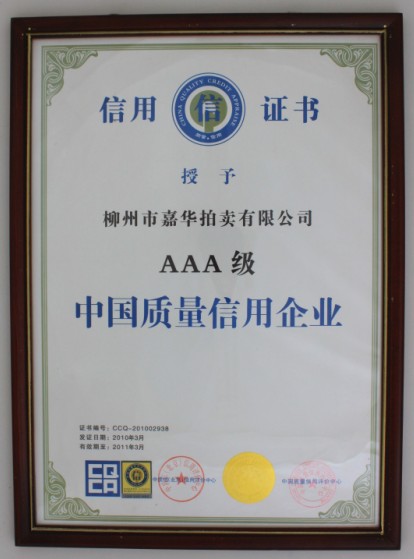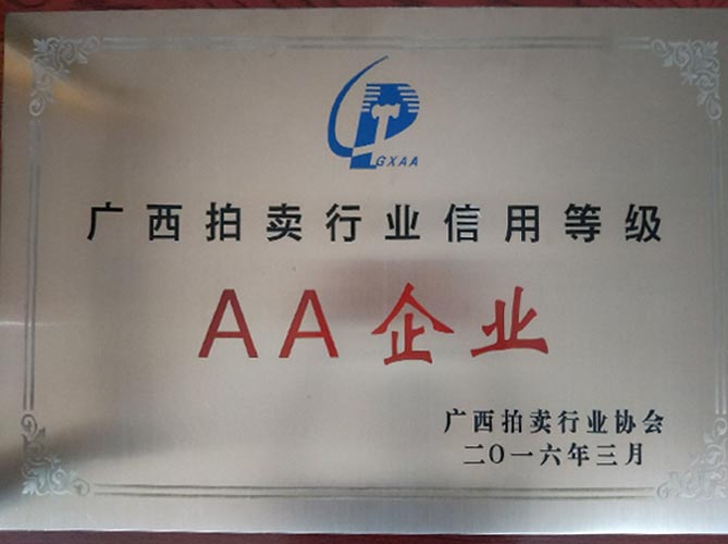 廣西拍賣(mài)行業(yè)信用等級(jí)AA企業(yè)