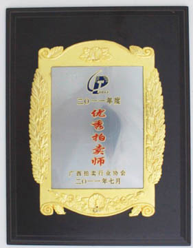 第三屆全區(qū)拍賣(mài)師主持技七競(jìng)賽銅槌獎(jiǎng)
